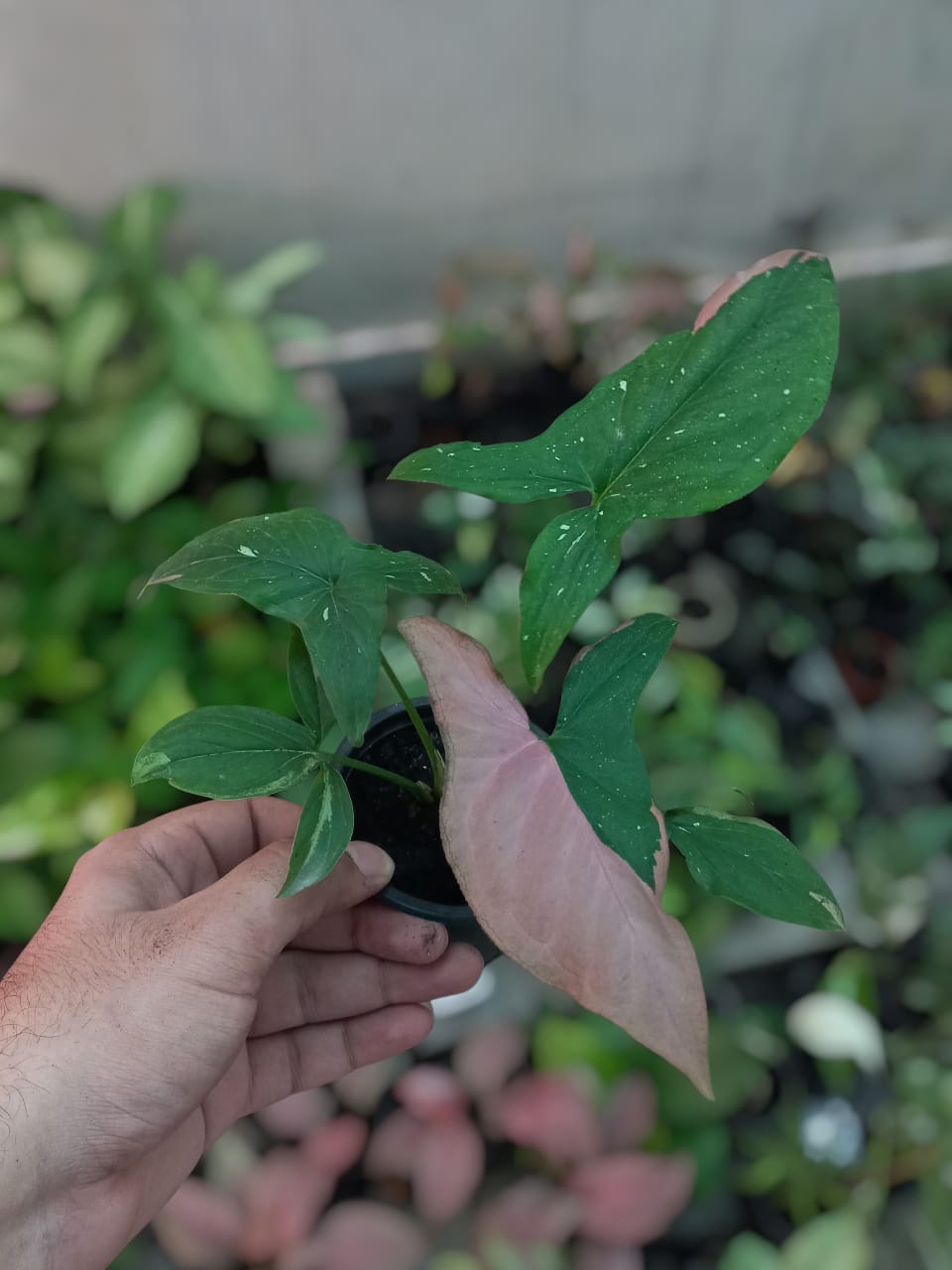 Pro Tip: To maintain its colorful variegation, give your Red Spot Tricolor Syngonium plenty of bright, filtered light and rotate it regularly for even growth.